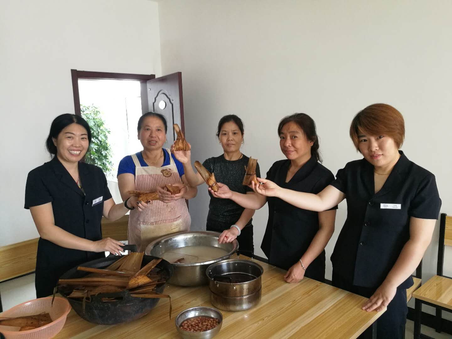 端午佳節(jié)期間,廚房大姐在精心為公司員工包粽子